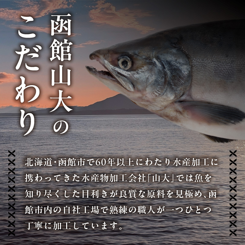北海道・函館市にある水産物地方卸売市場で、60年以上にわたり水産加工に携わってきたヤマダイグループの水産物加工会社「山大」では、魚を知り尽くした目利きが良質な原料を見極め、函館市内の自社工場で熟練の職人が一つひとつ丁寧に加工しています。