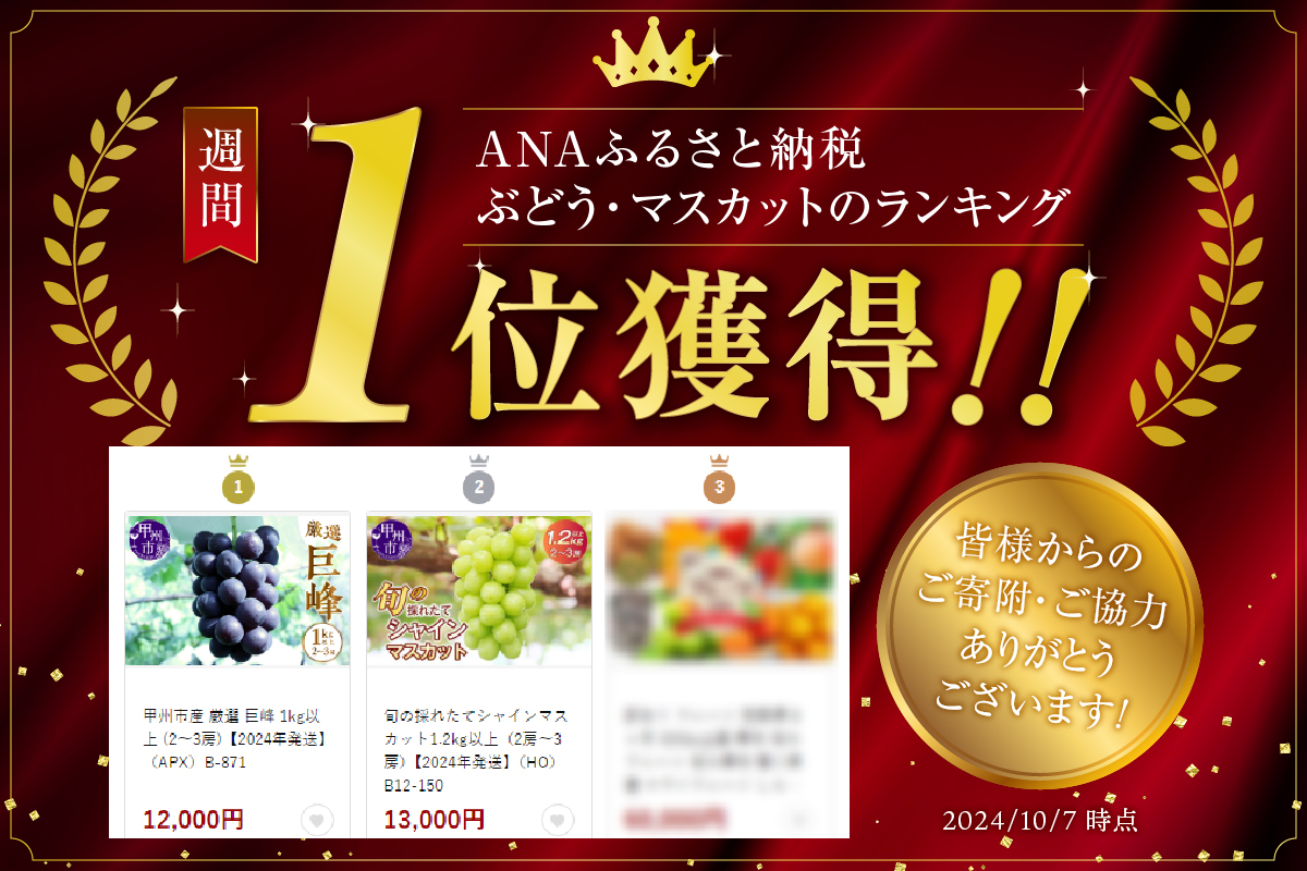 ~大粒ぶどう元祖『巨峰』の種なしです。~