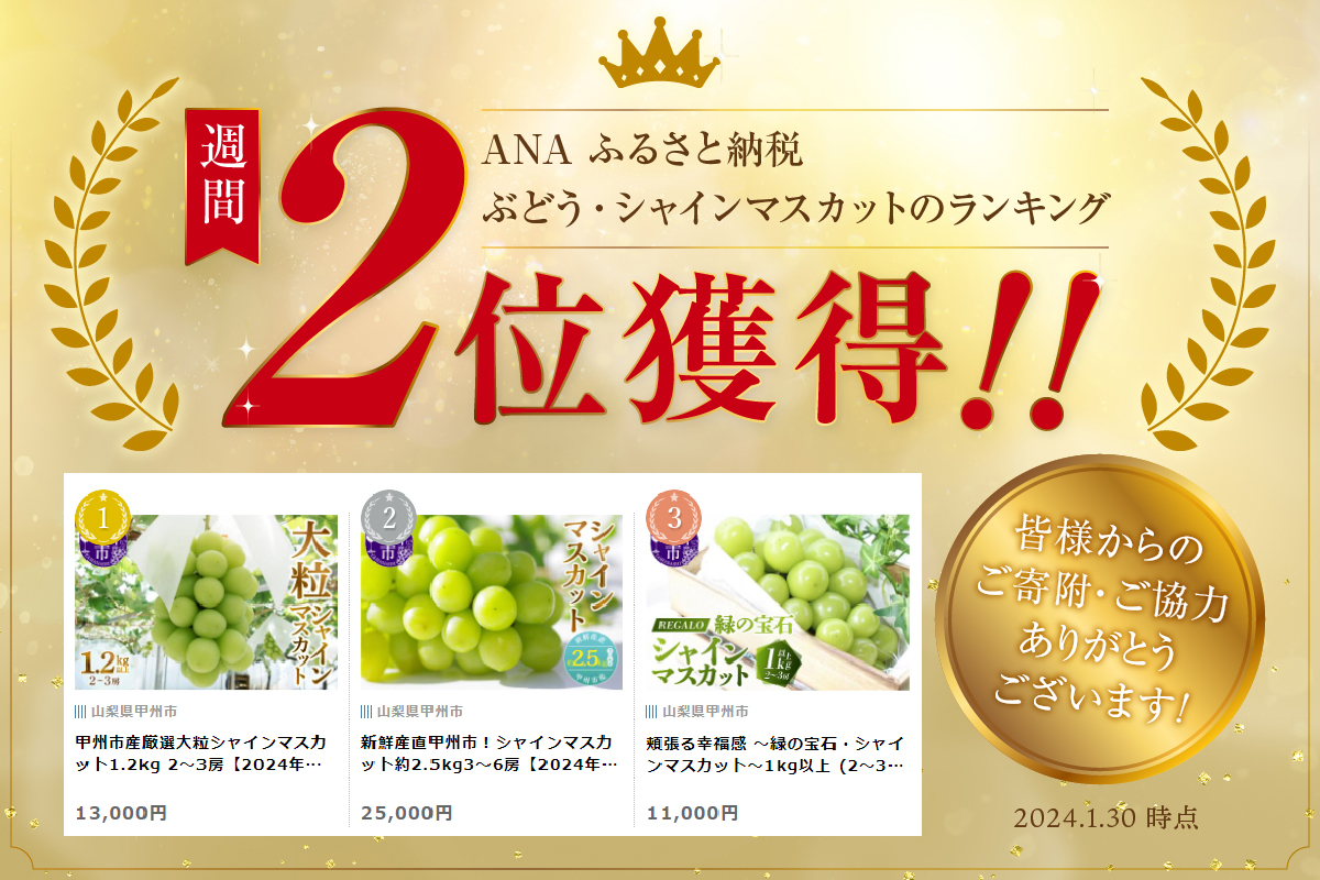 ~ぶどう栽培の知識、技術を惜しみなく注ぎ込んだシャインマスカットを産地直送でお届け~
