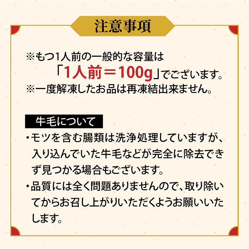 ※もつ1人前の一般的な容量は「1人前=100g」でございます。