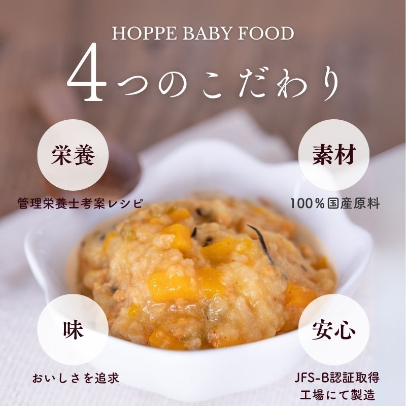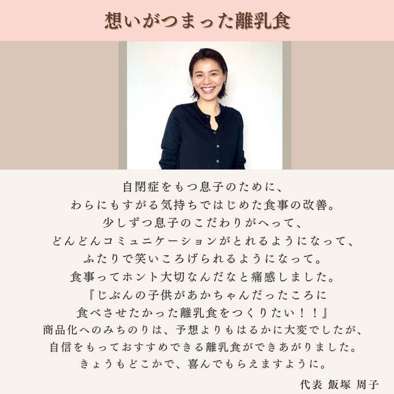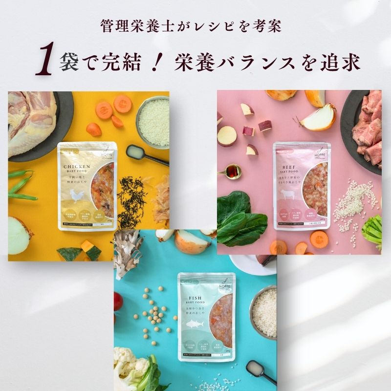 赤ちゃんの健やかな成長を願い、1袋で1食分の栄養がほぼ補えるよう、管理栄養士がレシピを開発しました。