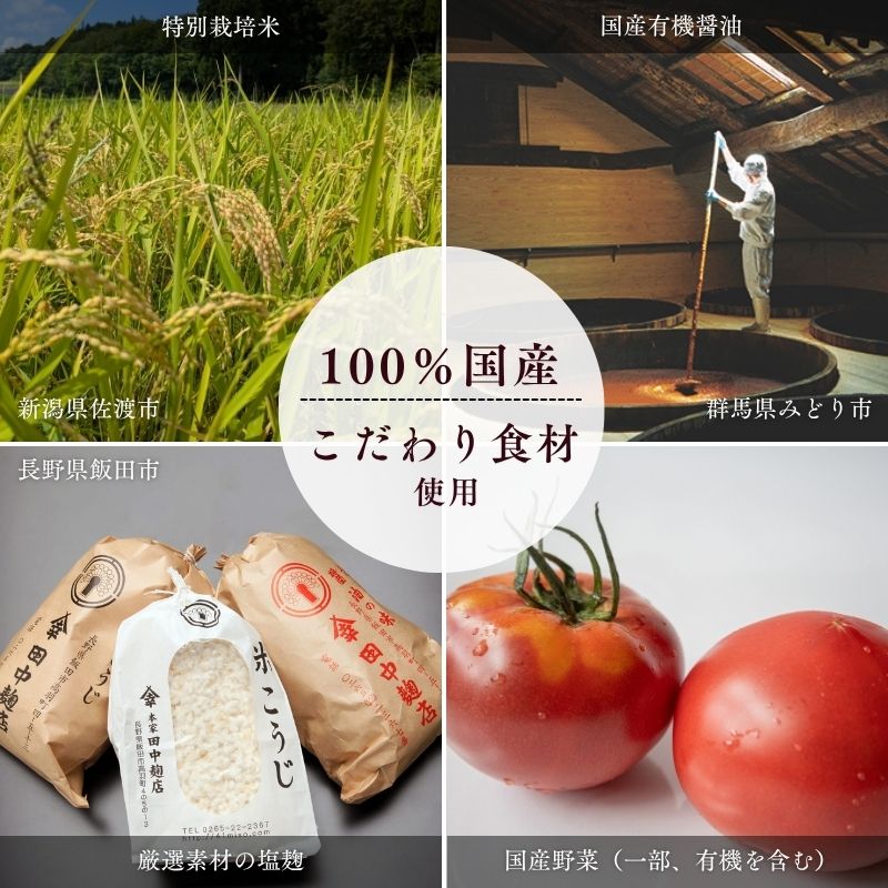 たくさんの野菜や大豆、ひじき等、使用している食材は全て国産にこだわり、食品添加物・化学調味料(うま味調味料、調味料(アミノ酸等))は一切使用していません。