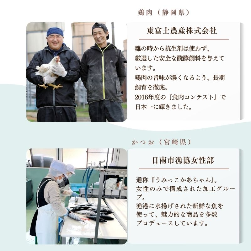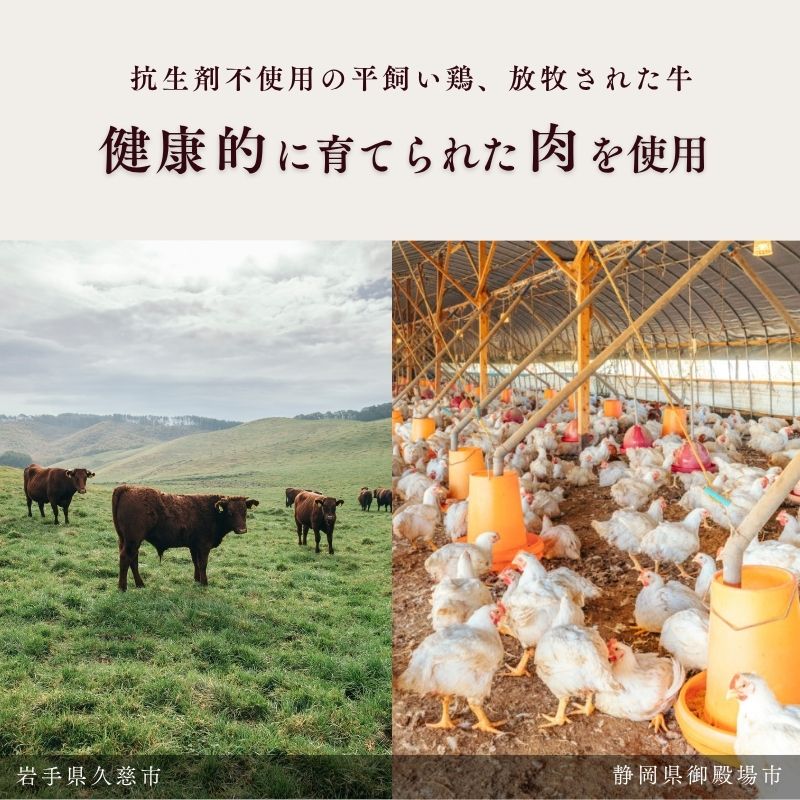 また、抗生剤不使用の平飼い鶏や放牧された牛など、ストレスが少ない環境で育てられた肉を使用しています。