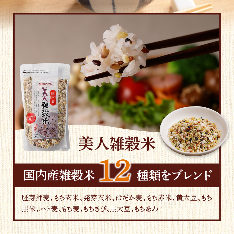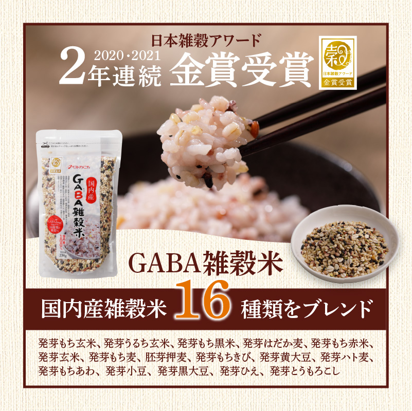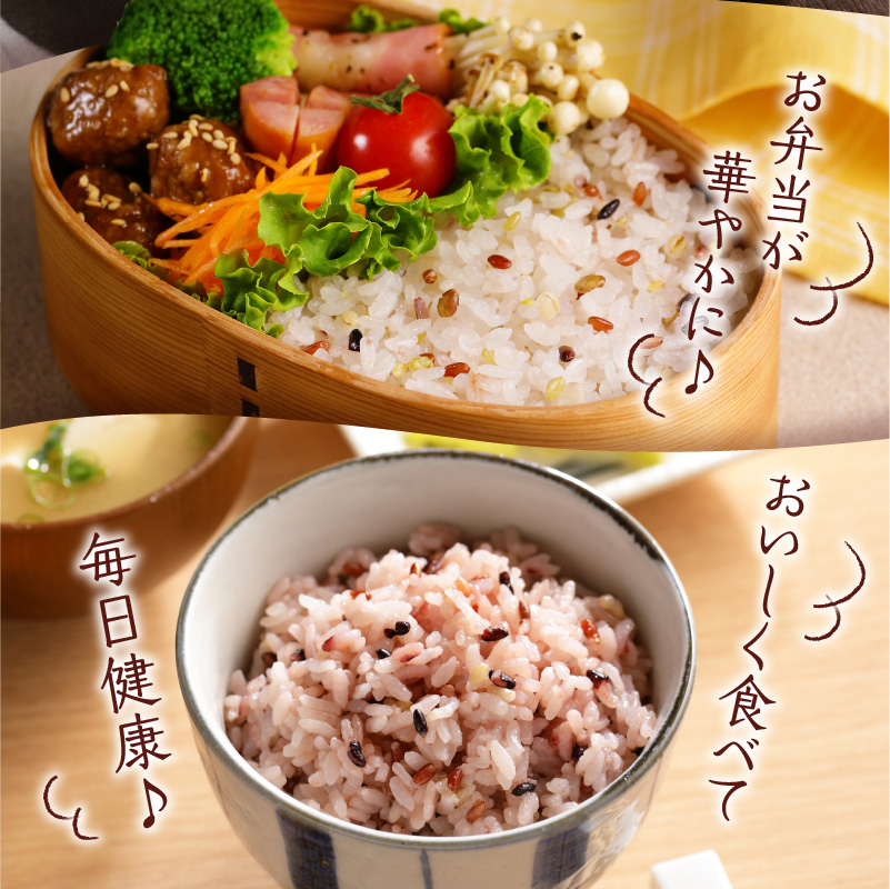 雑穀米は、日本雑穀アワード3年連続金賞受賞・殿堂入りのGABA雑穀米を始め、美人雑穀米と五種玄氣米をセットに。