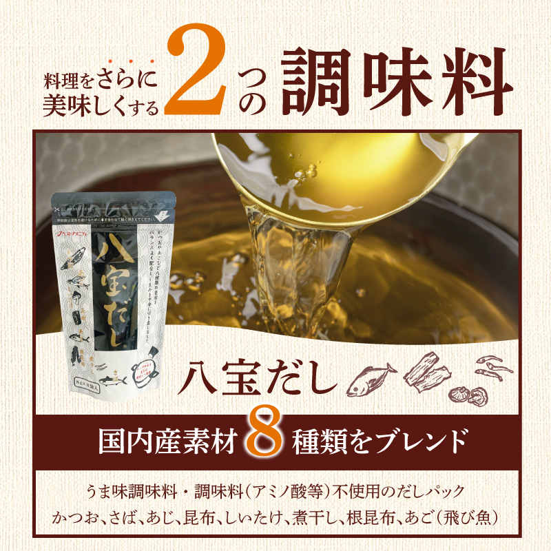 調味料はナチュラルクックと八宝だしをセットにしました。