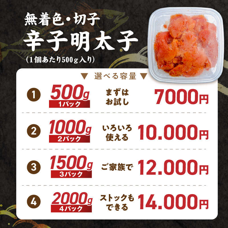 【2026年1月お届け】無着色辛子明太子 切子 500g _Mm009-m01