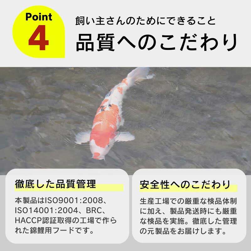 錦鯉の成長と健康を第一に考え、厳選された素材を使用したフードです。