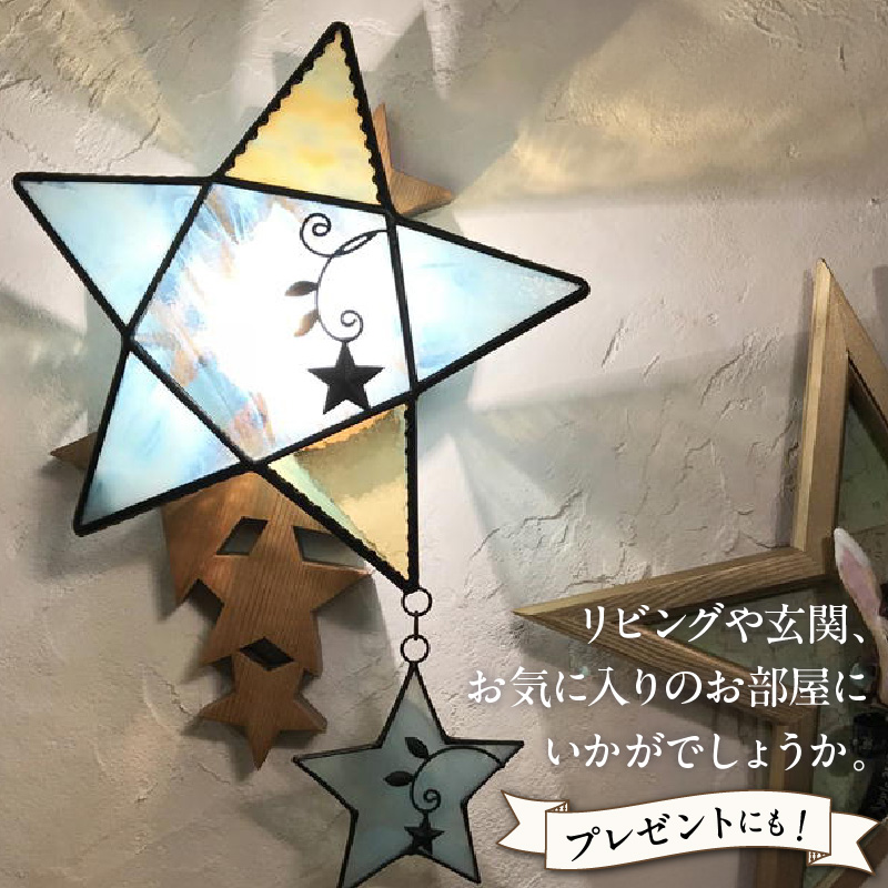 Apple HoLic ステンドグラス 星のウォールライト 『 Neverland / ネバーランド 』_ステンドグラス 星 ウォールライト ライト LED対応 おしゃれ 照明 灯り ハンドメイド ランプベース オールドパイン キラキラ モダン クラシカル プレゼント 福岡県 久留米市 お取り寄せ 送料無料_Qb028