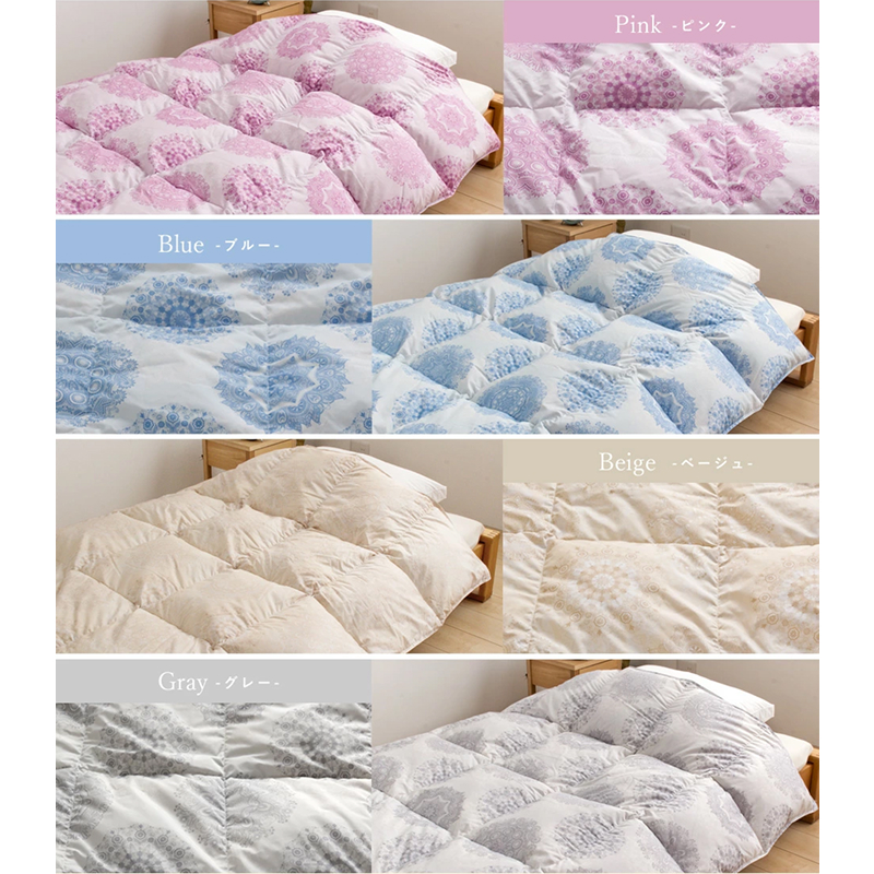 ダウン率が50%以上の品を羽毛布団と言いますが、本品は控えめ表示のダウン率70%の品質です。表示のルールとして誤差±5%は認められていますが本品は創業大正14年の老舗寝具店「ふとんの江崎」の製品なので、通常より厳格な基準を独自に設けています。ふとんの江崎の基準をクリアした品質なので中身の見えない羽毛布団も安心してご使用頂けます。