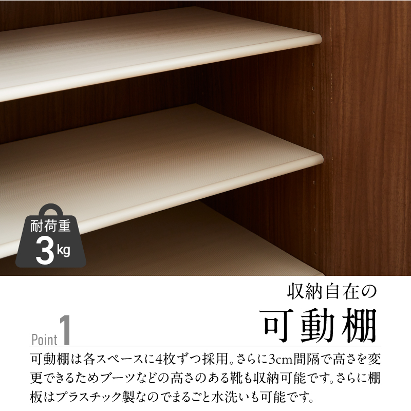 ・フラットデザイン、奥行35cmで手狭な玄関でも邪魔になりません。