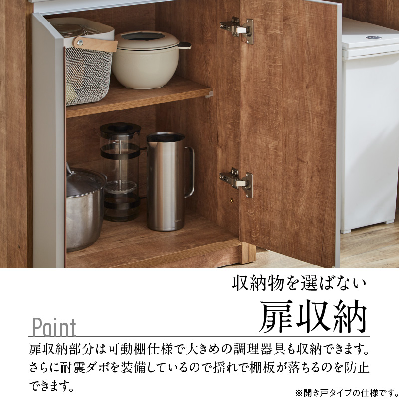 ・両開きの棚には多くの食器が収納でき、出し入れも簡単です。