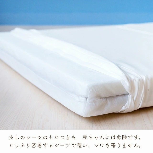 ・赤ちゃんの背骨はおなかの中ではゆるやかなCの字になっています。生まれてきて初めて平らなところで寝ます。その時、もしお布団がやわらかいと赤ちゃんのおしりや背骨が沈み込んで深いCの字になり、不自然な状態になります。だから、赤ちゃんの敷布団は適度な固さが必要と言われています。
