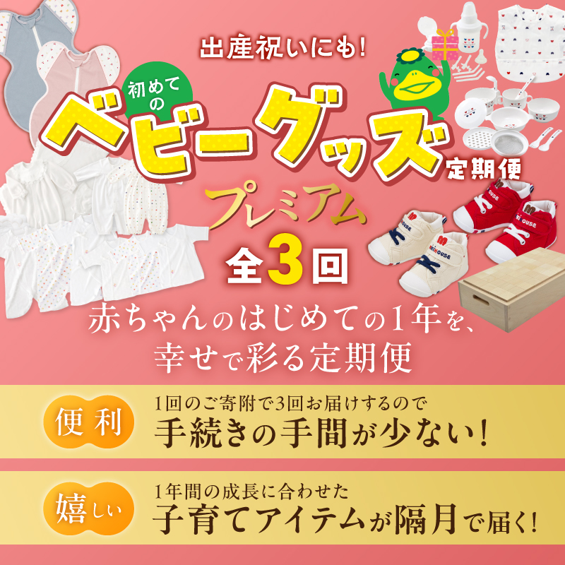 安心・便利で上質な内容だから、初めての1年を特別な思い出で満たすプレミアムな定期便です。