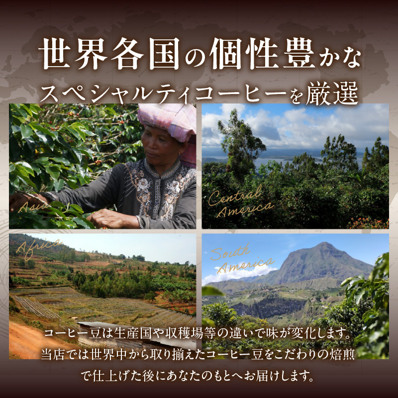 当店では世界各国の個性豊かなスペシャルティーコーヒーを多数取り揃えており、それぞれの風味特性を余すことなく引き出せる「手鍋焙煎」で仕上げております。お気に召していただけたら幸いです。コーヒーと共に素敵なひと時をお過ごしください。